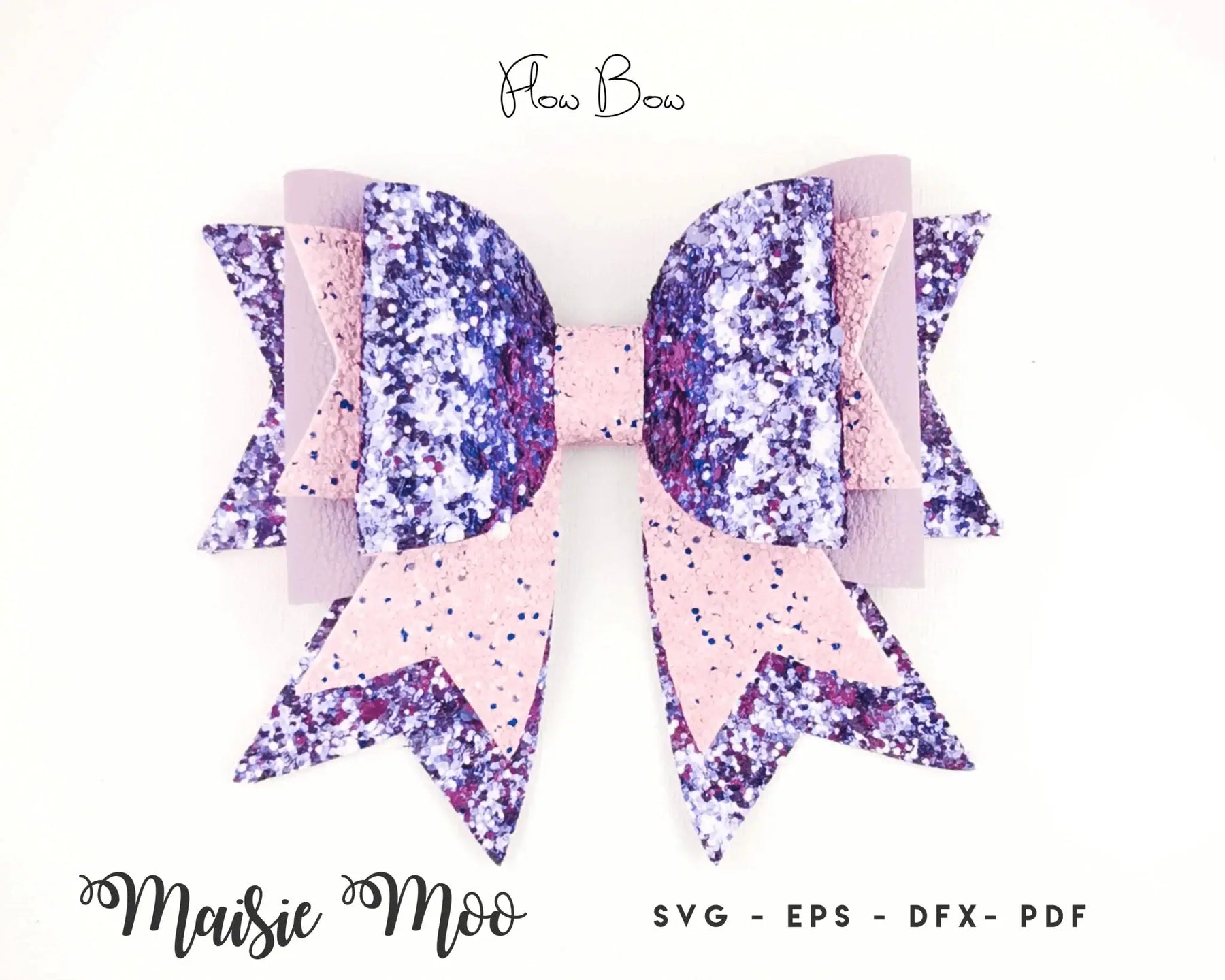 Flow Bow SVG Template - Hair Bow Template - This 'bow on bow' style is so effective and super easy to create. Your bow is made up of four layers, two plump bows sit atop a single tail piece, designed to look like a double tail with flowing ribbons. Choose to add the smaller tail between to the two plump center bow pieces to create the 'bow on bow' look.
