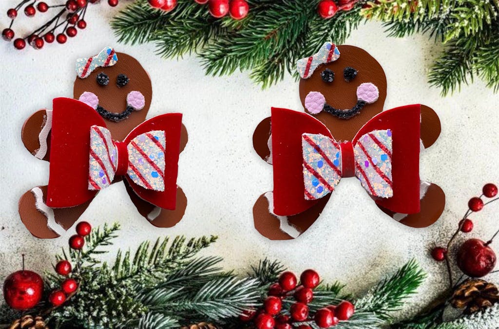 Gingerbread Bow - This fun Gingerbread bow is perfect for Christmas. It is a triple layered bow with two plump bows on top of a gingerbread shaped tail piece! Sooo cute!