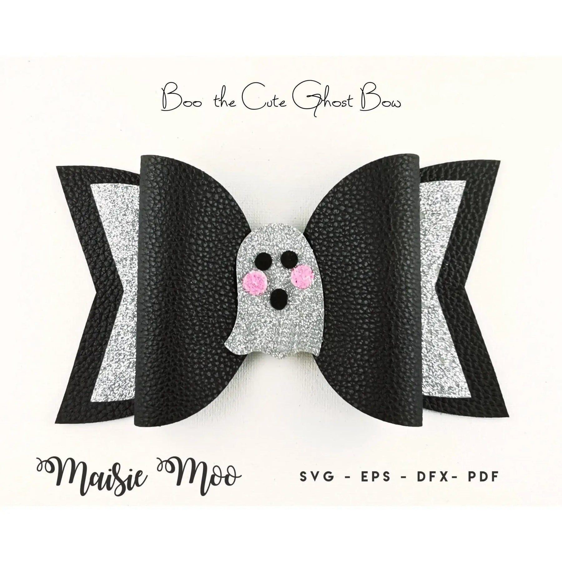 - Boo the Cute Ghost Bow - How cute is this wee guy? Not scary at all with his little pink cheeks. This is a classic bow style with double layered tail pieces and a nice plump bow on top. Boo can be placed in the center as shown or wherever you please.