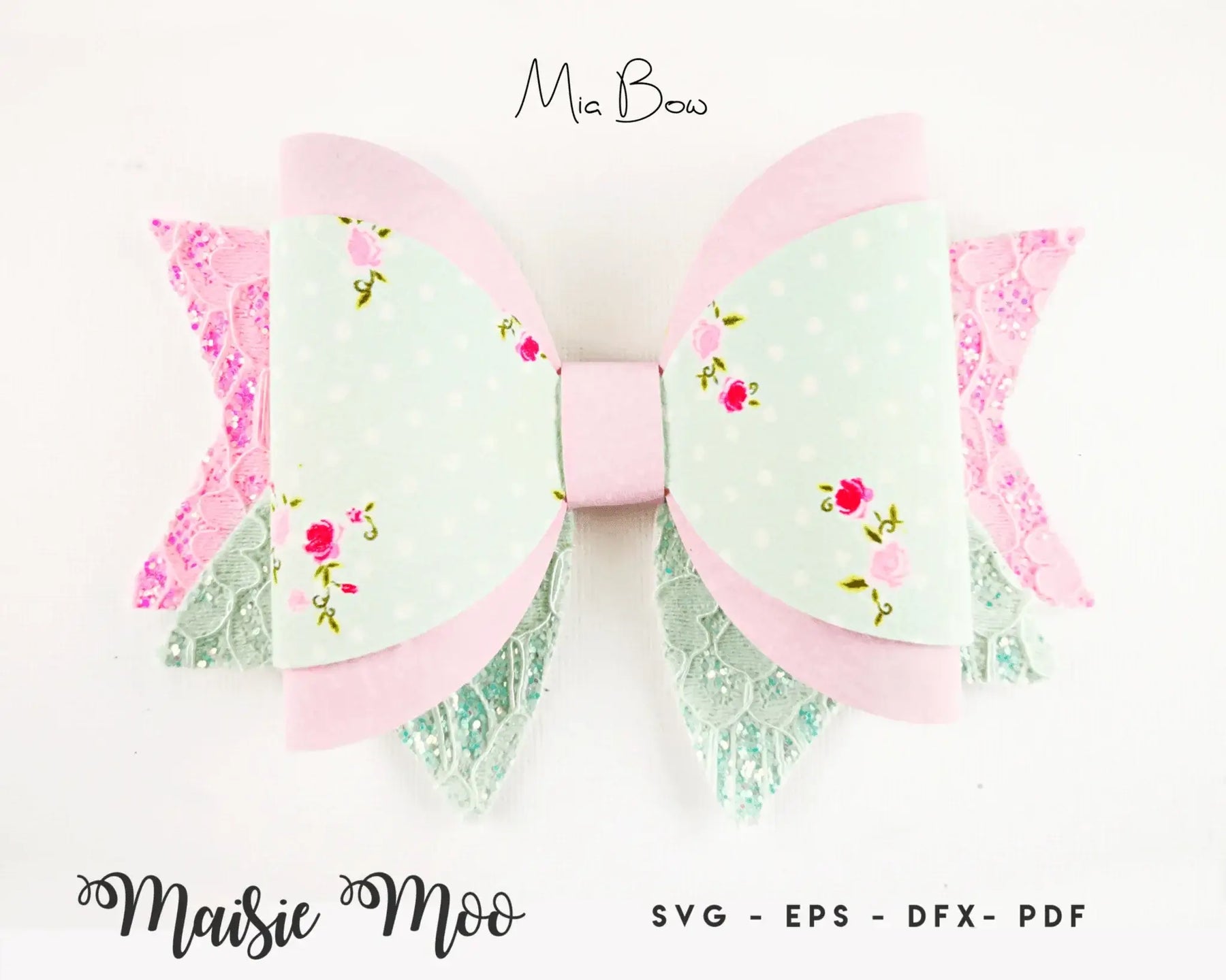 Stacked Bow SVG Template - Hair Bow Template - This classic bow style is super cute and super easy to create. Your bow is made up of four layers, two top bow pieces which neatly wrap around each other and two tail pieces. You can use all pieces for one bow style or change them up to create something unique to you.