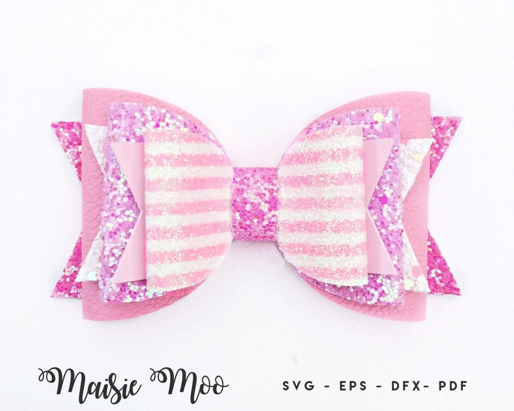 Lolly Bow SVG Template - Triple Stacked Hair Bow Template - This 'bow on bow on bow' style is so effective and super easy to create. Your bow is made up of six layers, three plump bows sitting atop a peaked tail piece, all stacked to make the most adorable bow.