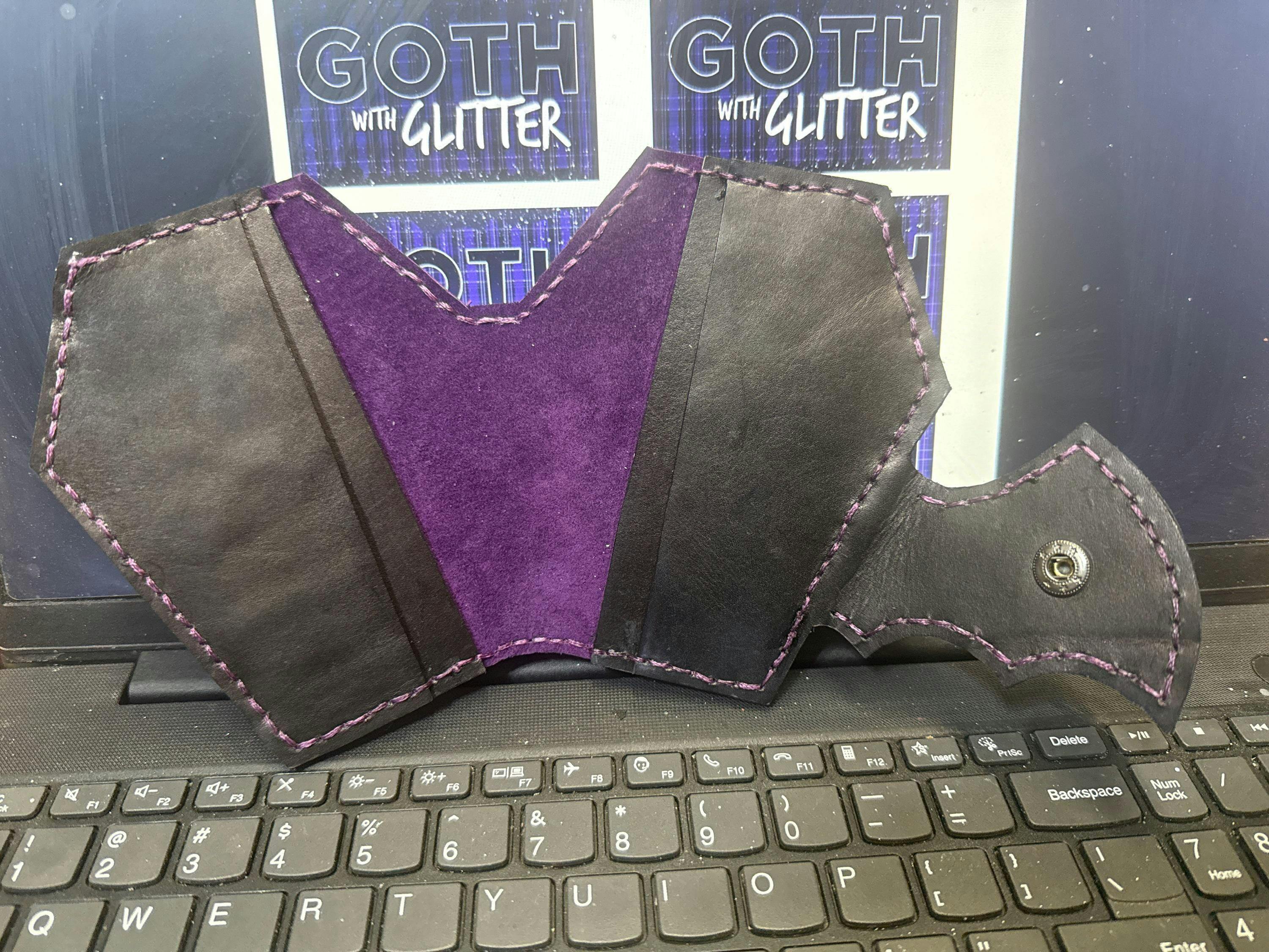 The 'Easy Stitch' Cozy Coffin Card Wallet with a Bat Wing closure.