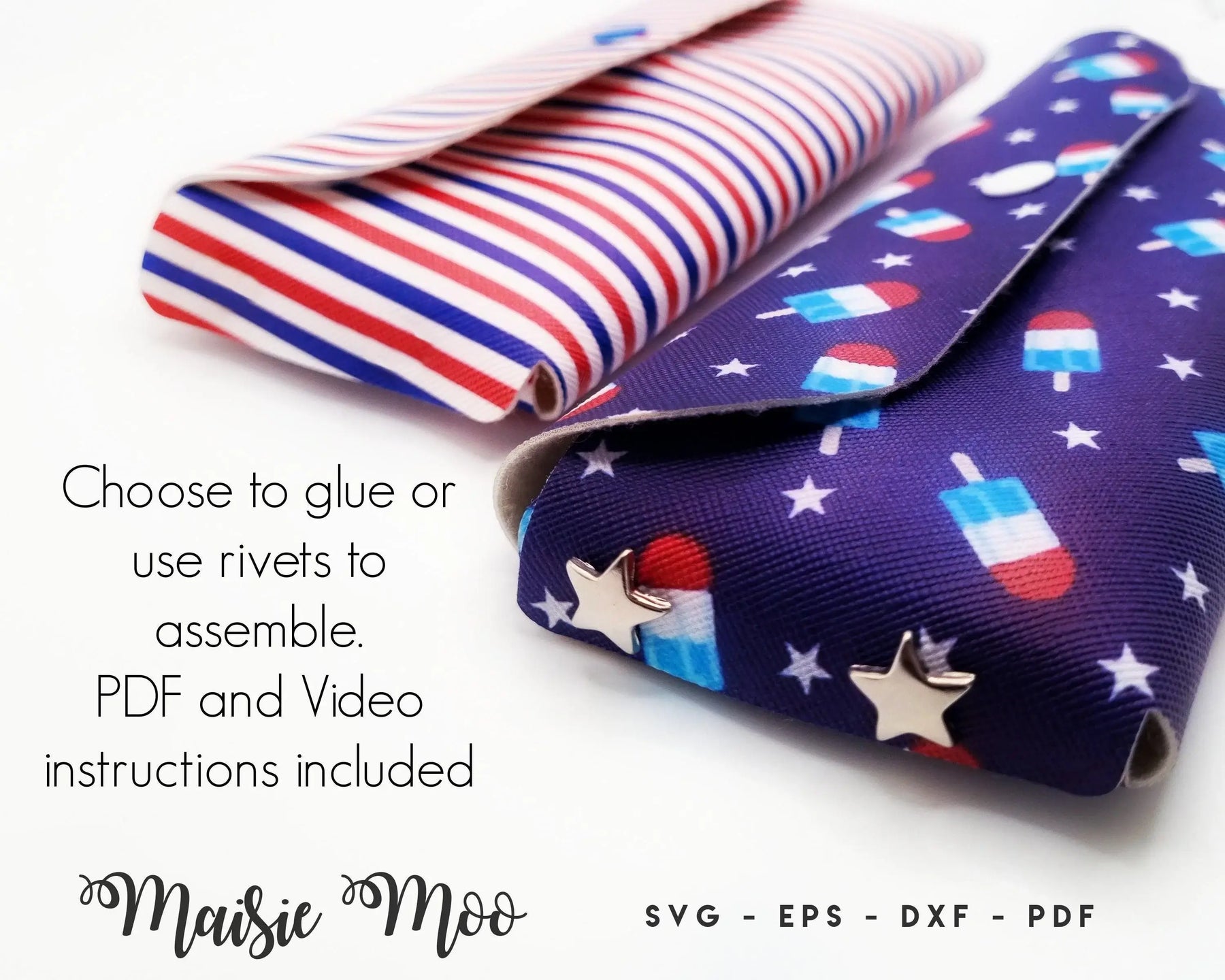 Choose to assemble with rivets using the precut holes or simply glue the sides. Includes holes for snap closure or without for velcro spots. Lots of options!!