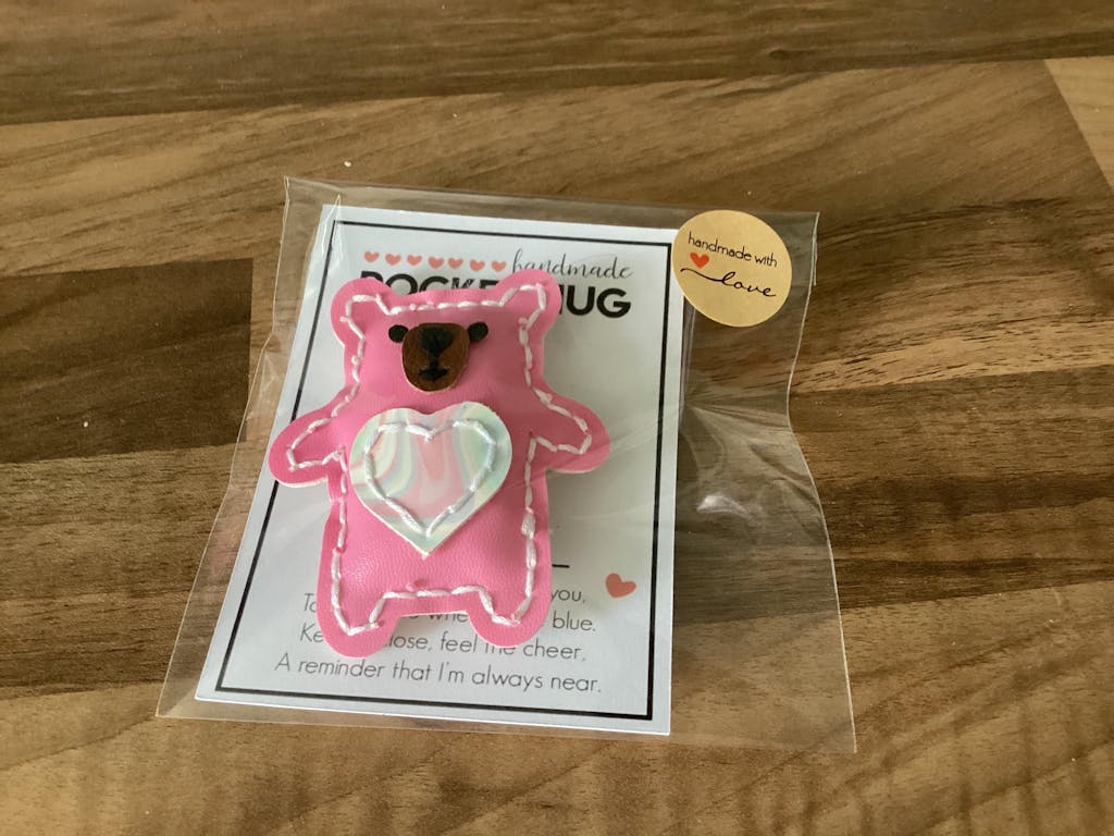 Faux Leather Pocket Bear Hug SVG Pattern – DIY Mental Health Gift, Thoughtful Keepsake