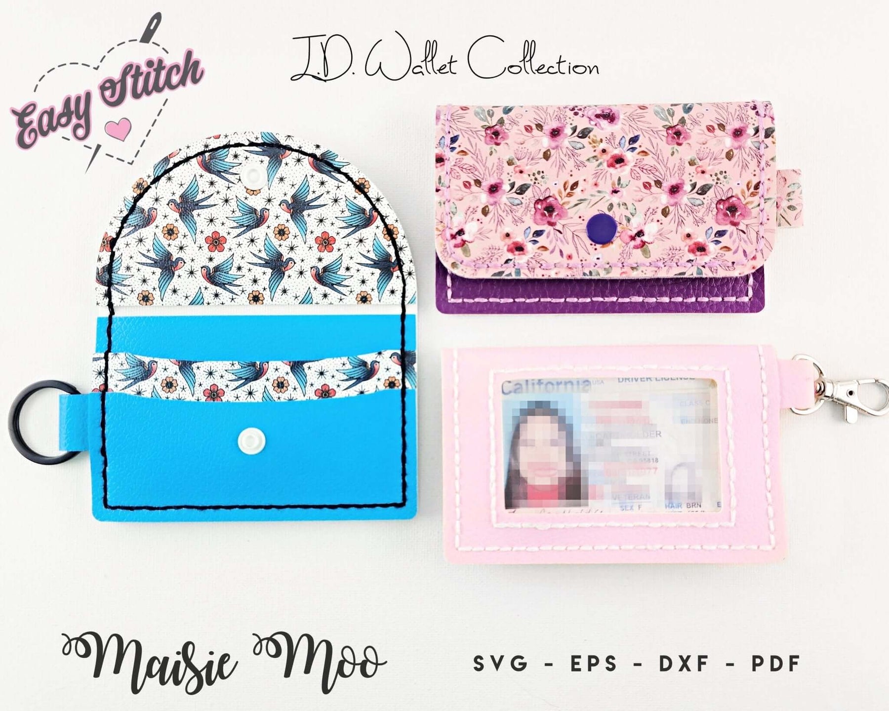 The 'Easy Stitch' ID Wallet Collection - Small Photocard Holder Template SVG - Faux Leather Wallet Pattern