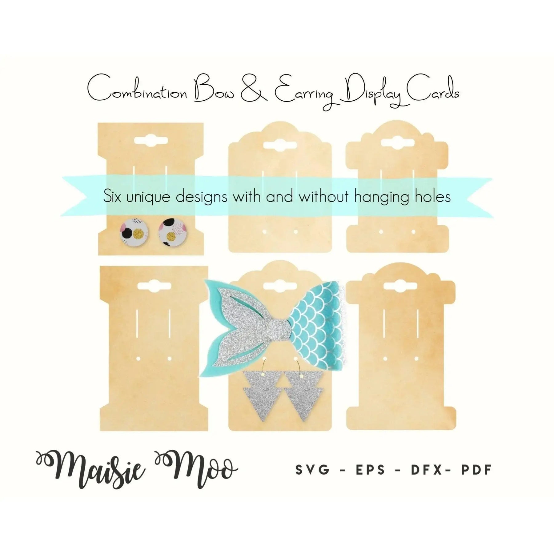 SIX - Combination Bow and Earring Display Cards. Suitable for most sized bows and both stud and hanging earrings. Great for matching sets! Display your beautiful earrings, hair bows, bands and clips on these classic shaped display cards.