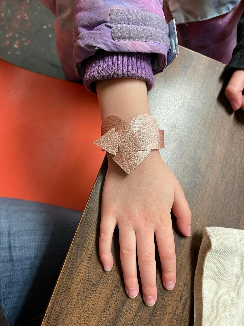 Comes in Small and Large heart for adult or child. Each size has three lengths for different wrist sizes. Cut on paper first to determine your size.