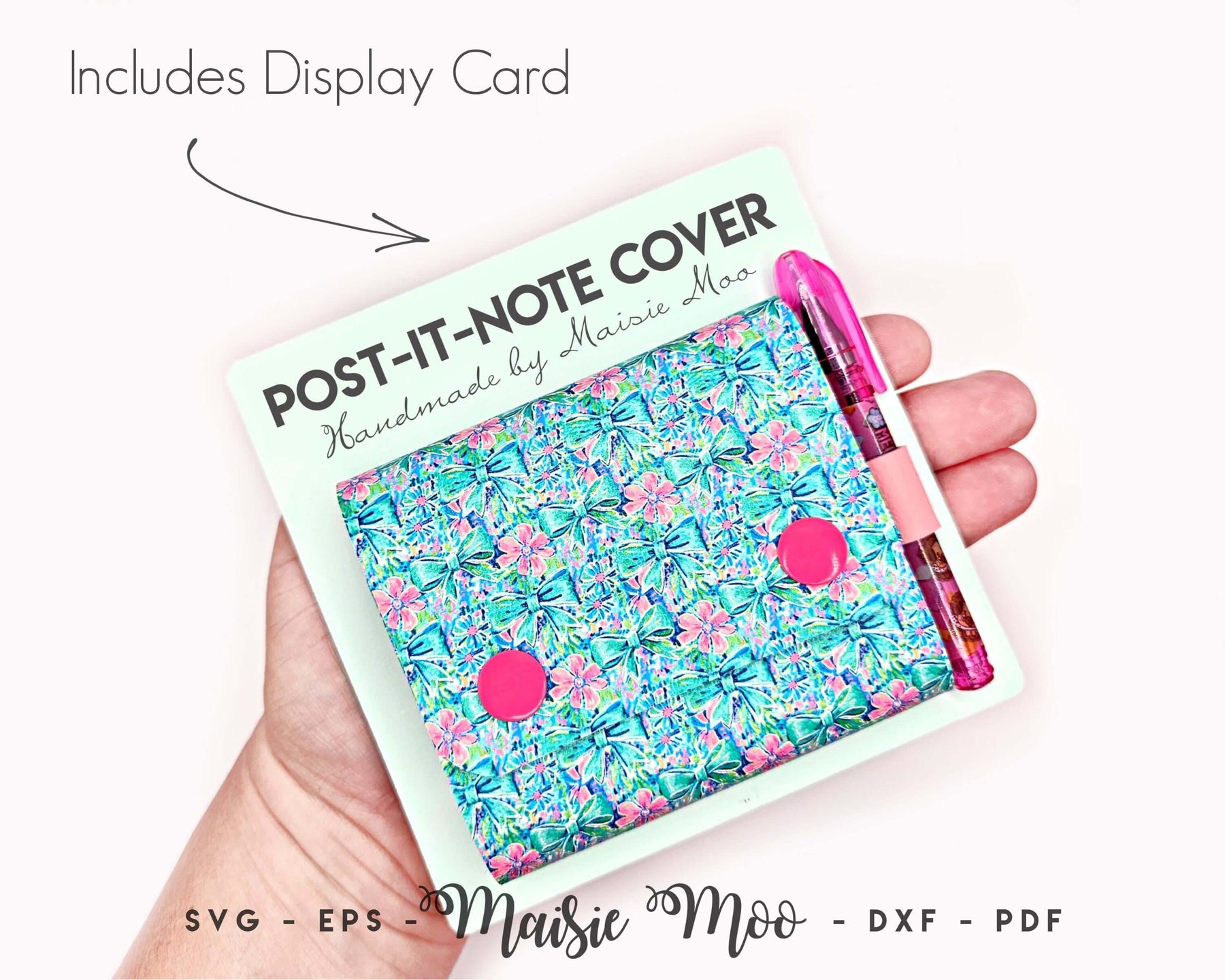 The file was easy to download and then export to my Cricut Design space. Project cut beautifully with out any adjustments and fit a 3”x3” pad of sticky notes. Love how the the pen tab comes together. Best part, she includes a display card that you can personalize! And everything fits.