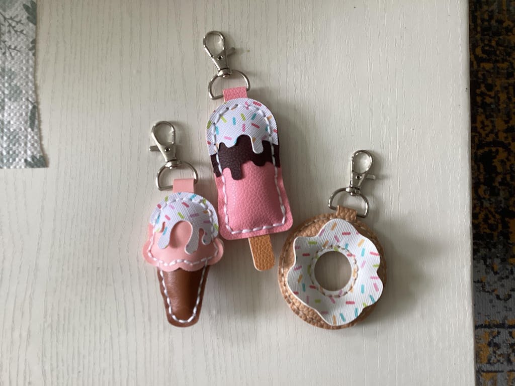Create adorable ice cream, popsicle, and donut keychains or bag charms with this Sweet Treats SVG template. Designed for Cricut, Glowforge, and laser cutting, this DIY project allows you to craft stylish faux leather or leather keychains that look good enough to eat.