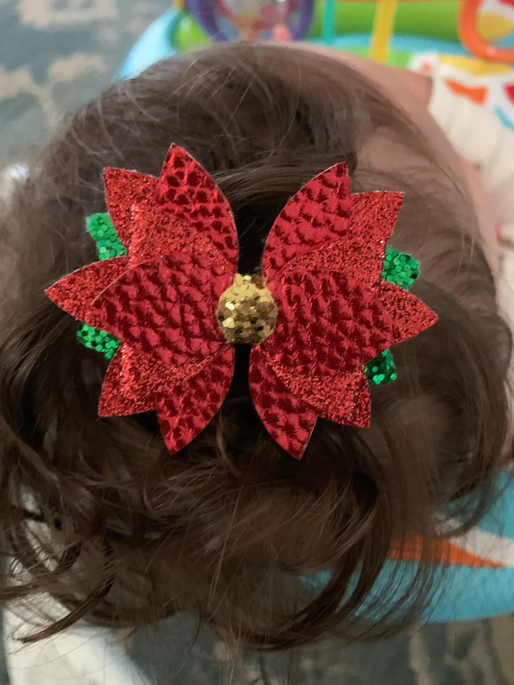 Poinsettia Bow - You can't get much more festive than this luxuriously beautiful poinsettia hair bow. Unique to Maisie Moo, this bow has 5 layers which means you can add different textures and materials to create depth and richness.