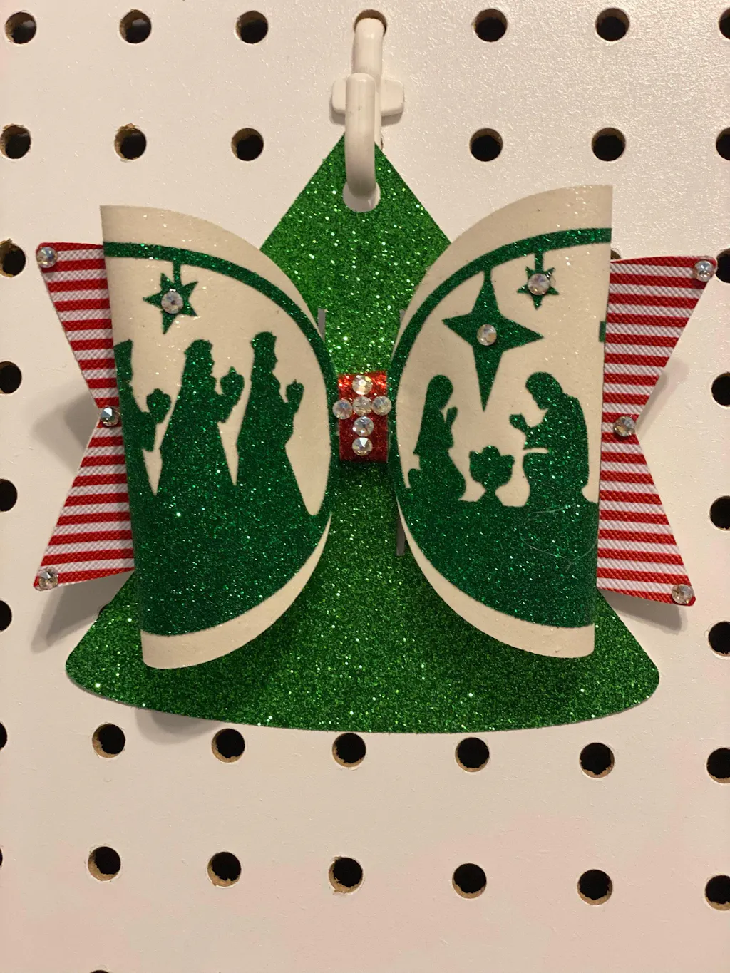 Christmas Nativity Bow Template - This bow is unique to Maisie Moo, using my signature overlay technique to create something special for Christmas. This is a triple layered bow, the base is a fat pointy tail with a large plump bow sitting on top, this has a delicate nativity scene silhouette overlay. The overlay features the three wise men travelling to see baby Jesus in the manger.