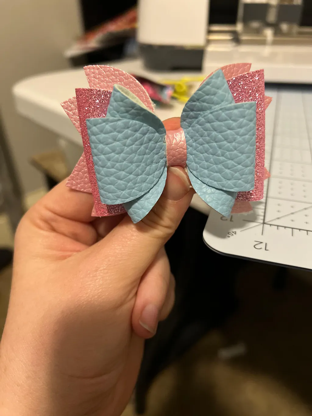 Cut by hand or with your Silhouette or Cricut cutting machine. This bow looks great in faux leather, glitter canvas, felt backed fabric, felt, craft foam, whatever you choose it is sure to look fab! I will show you how with my step by step photos and instructions.