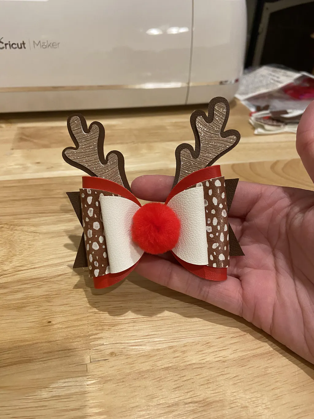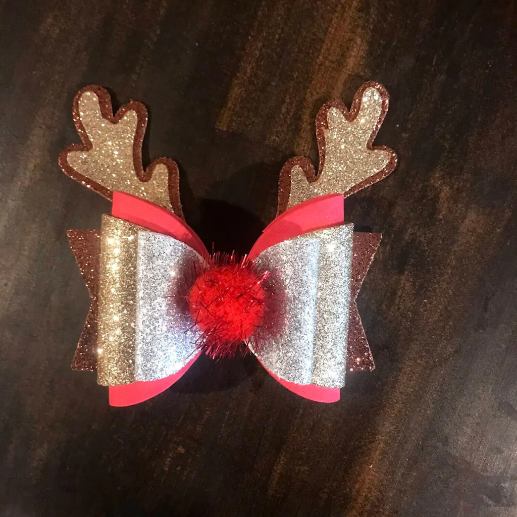 Reindeer Antler Bow SVG- This striking reindeer bow is perfect for Christmas. It is a quad layered bow, starting with a small plump bow sitting atop two 'wrapped' style bow pieces which is then sitting on the antler shaped tail piece. Finish off with a cute pompom nose if you wish. Sooo cute!