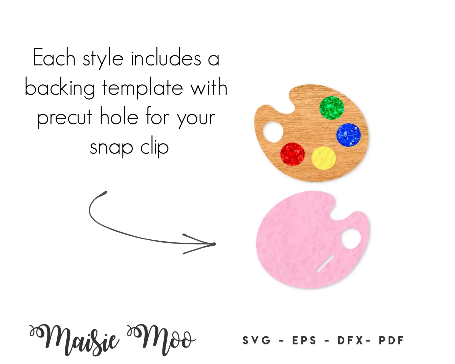 Back to School Snap Clip SVG Covers - Includes 5 Designs - Red Apple for the Teacher, Colorful Crayon, Color Paint Palette, Ruler, Pretty Cut Apple.