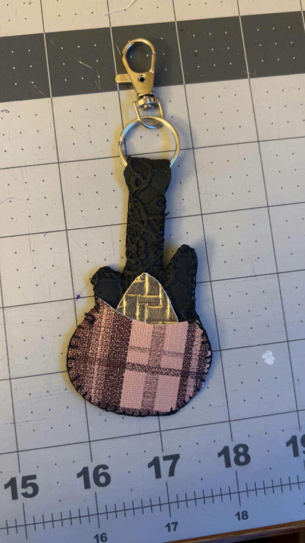 Make handy cute guitar plectrum holders keychains with your Cricut or Silhouette cutting machine. No machine sewing is required! Simply cut, fold, and hand-stitch your holder using the pre-cut stitch holes for a professional finish.