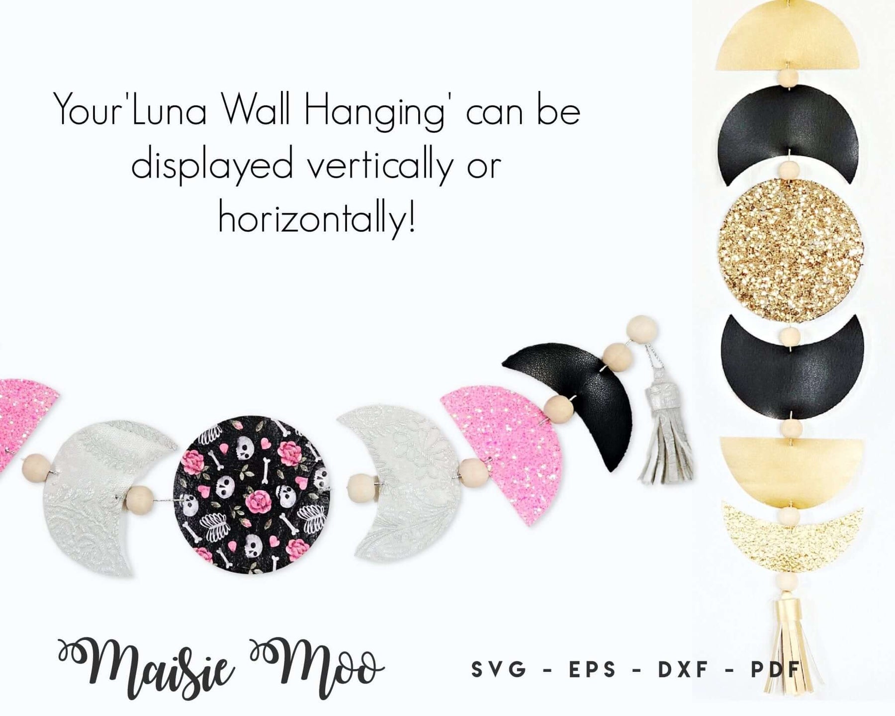 Create your very own boho wall hanging or garland. This celestial moon phase wall decor can be made from leather, faux leather, glitter canvas what ever you choose... add wooden beads and finish off with a tassel, it is sure to a mystical touch to any room and make the perfect gift.