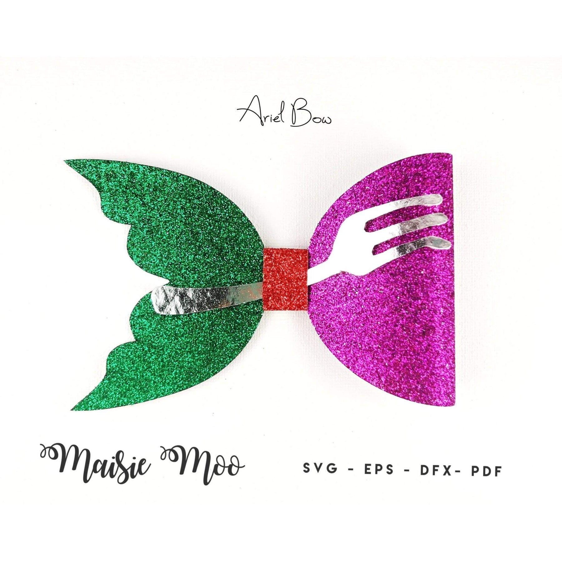 Ariel Mermaid Tail Bow - This bright bow is a must for all little mermaid fans. This is an asymmetrical bow, with a pretty scalloped tail on one side and a one sided bow on the other, finished off with a dingle hopper fork. This bow can be made in felt, paper, faux leather, glitter canvas whatever you choose it is sure to look fab!